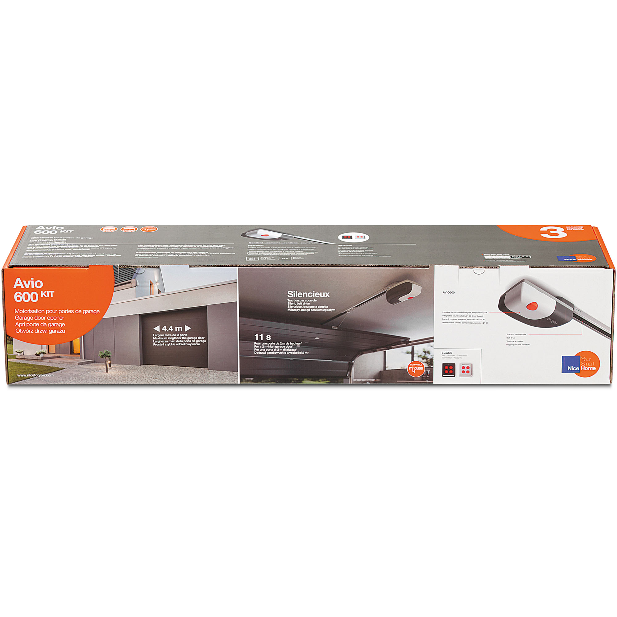 Kit de deschidere a usilor de garaj NiceHome Avio 600 24V usor de instalat, pentru usi sectionale sau basculante. Automatizare conceputa pentru o instalare rapida, simpla si rentabila.