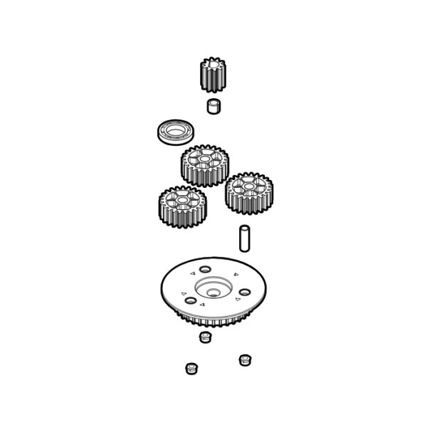 Acest set (cod PRHO04) reprezinta ansamblul de roti dintate si sateliti pentru mecanismul de reductie al motoarelor articulate NICE HOPP. Grupul include suportul pentru sateliti, rotile dintate intermediare, axele si rulmentii necesari pentru transmiterea corecta a cuplului catre brat.
